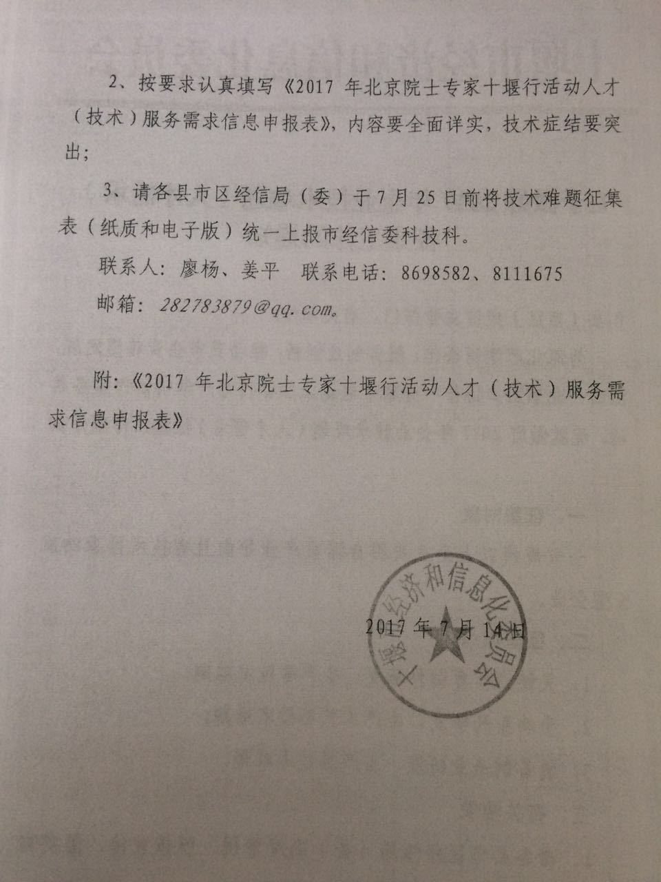 关于做好2017年企业技术难题(人才需求)征集工作的通知